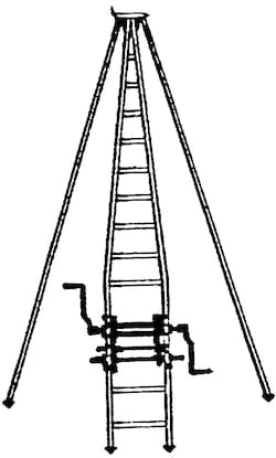 - Use a well tripod or other locally developed structure to facilitate safe entry to and exit from the well for the people removing debris or repairing inside the well. This is particularly useful for deeper wells.